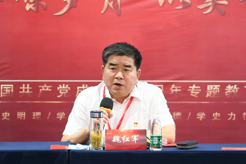 魏红军在讲话中表示,这是一次学习习近平总书记在庆祝中国共产党成立100周年大会上的重要讲话精神心得交流会,是一次高质量的主题党日与党性锤炼活动。他希望全体党员同志要珍惜所处的伟大时代,珍惜党员身份,珍惜党组织力量,坚定健康事业做大做强的信心,弘扬“艰苦奋斗、百折不挠、勇往直前、去战胜每一个困难”的洪湖精神,不忘初心跟党走、牢记使命跟党走、砥砺前行跟党走,不忘初心、开创事业,服务人类、奉献健康。魏红军要求,面对复杂的外部环境,正大天晴一是要继续坚持把党建与生产经营相融合、与业务发展相融合,以不变的初心应对大变的环境;二是要充分发挥党员的先锋模范作用,把党组织建设成为坚强的堡垒,提高战斗力,传承伟大建党精神,把党的各项要求在基层落到实处;三是要擦亮正大天晴党建品牌,深挖“党建与经营相结合”的丰富内涵,拓宽党建工作思路,提升党建工作水平,把党组织的政治优势转化为企业持续发展的竞争优势,推动正大天晴事业聚力量、开新局。