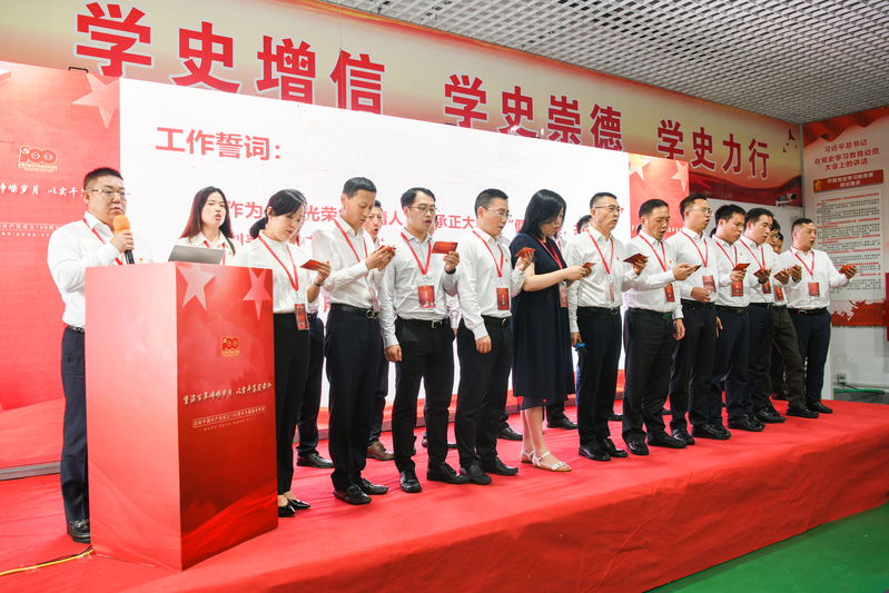 会上,九名优秀党员代表分享了学党史、感党恩、跟党走的感悟,纷纷表示将以共产党员的先进性指导工作,启发工作思路,取得良好业绩。在姜国勇的带领下,与会人员郑重进行工作宣誓,承诺用智慧和汗水创造价值,为实现百年天晴而不懈奋斗。