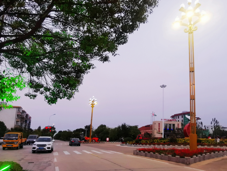 近日,机关大楼前两盏造型优美、身姿挺拔的路灯吸引了职工居民的目光,与绚丽的花朵、翠绿的树木、喜庆的中国结以及建党100周年景观小品相得益彰,营造出了浓浓的节日氛围。