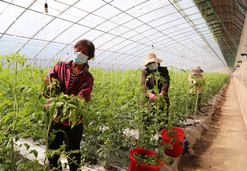 连日来,岗埠农场公司富民农业科技园认真谋划四季度生产工作,狠抓秋季管理,成效显著,各种作物长势良好。图为10月9日,园区工人正在为西红柿打叉、掐尖。