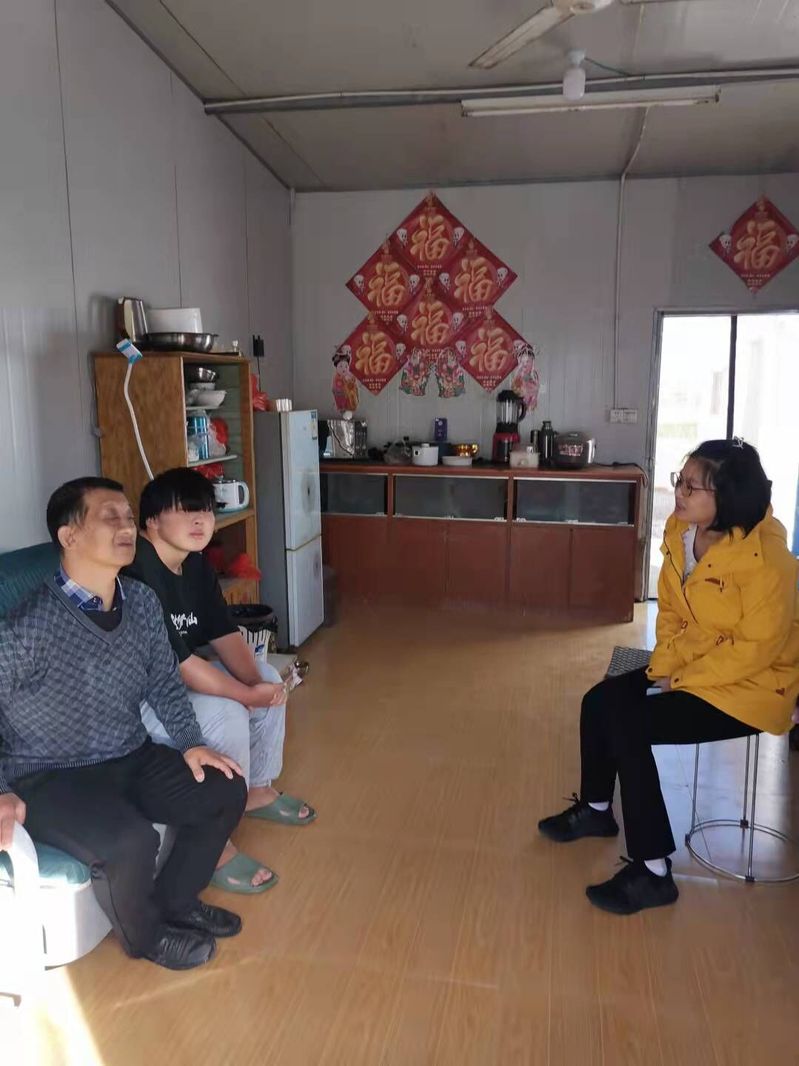 她出月子后,于10月17日带着慰问金、大米、食用油等和李书记一起来到虞道虎家探望。通过深入交流了解到,他妈妈是外地人,在他4岁的时候抛下他就再也没有回来,他爸爸身体残疾又患有糖尿病伴随着并发症,致使视力严重下降模糊看不清,原先还能靠开三轮车带乘客挣点微薄的生活费,现如今也只能作罢,面对如此不堪重负的家庭生活和上学的双重压力,家庭收入几乎为零,经过村、镇的申请,县政府相关部门的审批,最终他爸爸获得了残疾补贴和民政低保收入,家庭全部收入也仅限于此。“党员妈妈”王靖与虞道虎的交谈中,得知他本人对未来很有想法,目前就读于扬州技师学院,五年制大专,数控专业,他计划好好学习顺利毕业后将专转本,继续学历深造以便日后好去苏南就业,考虑苏南相对高工资可以为穷困的家庭和年迈的父亲减轻压力。听此,王靖很欣慰,劝导父亲和虞道虎,困难是有,但是暂时的,只要虞道虎肯努力学习,保持积极乐观的心态,未来一定可期。