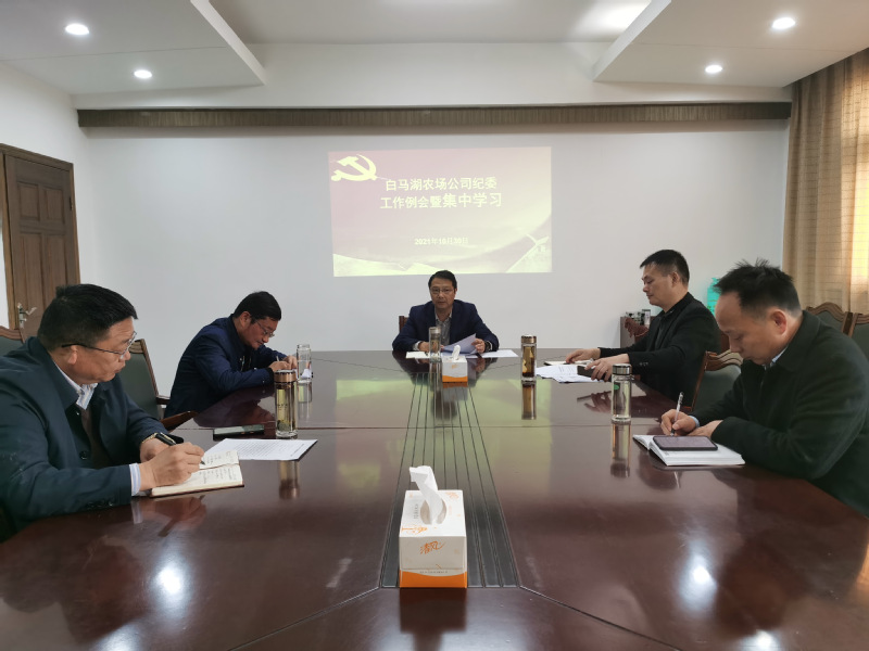 10月30日上午,白马湖农场公司纪委举行集中学习暨工作例会,纪委书记韩跃武主持会议,纪委全体委员会议。