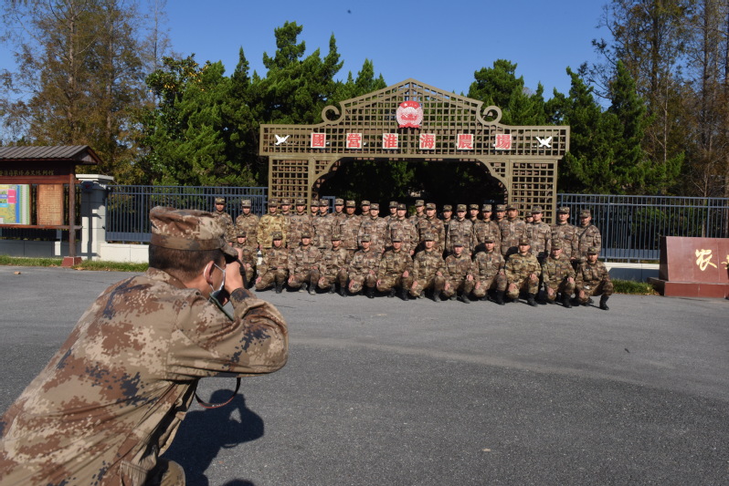 参观后官兵们还在陈列馆的台阶和国营淮海农场的门楼前进行集体合影,并表示,今后将深入学习贯彻习近平新时代中国特色社会主义思想和习近平的强军思想,在传承红色基因、担当强军重任中,不断提高履行新时代使命的任务和能力!