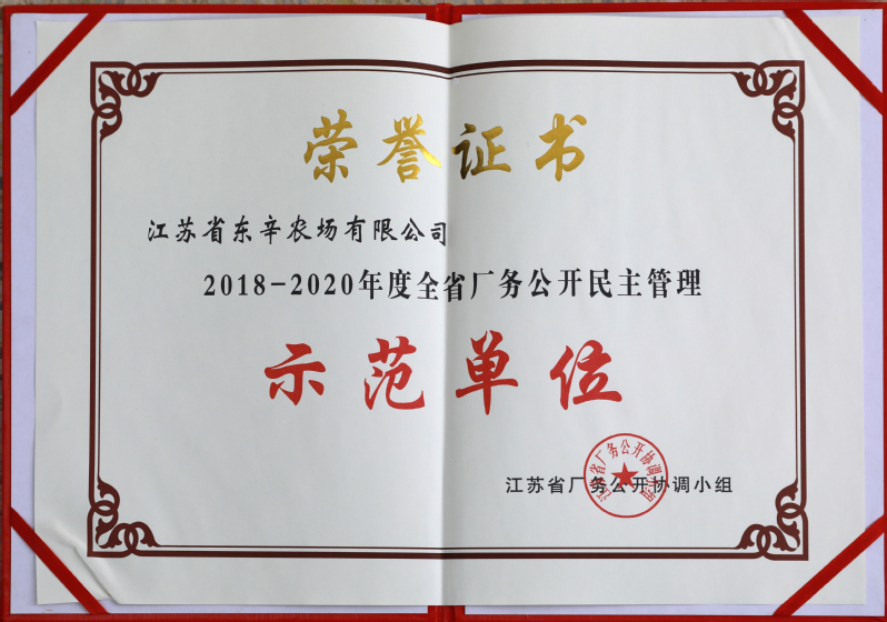 东辛农场公司坚持把实事求是、立足全局作为科学决策的基本前提,把以人为本、改善民生作为科学决策的根本任务,把深入调研、发扬民主作为科学决策的基础环节,把注重程序、健全机制作为科学决策的重要保障,确保决策沿着科学化、民主化、法制化的轨道运行,被评为“江苏省厂务公司民主管理示范单位”。