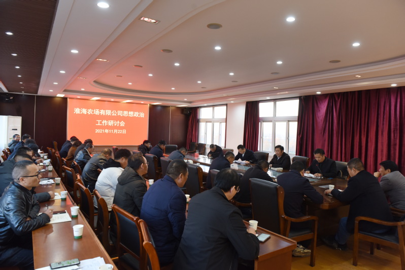11月22日下午,淮海农场有限公司在淮海分公司五楼召开思想政治工作研讨会,农场党委书记单祥忠对思想政治工作提要求,总经理助理于广伟宣读苏垦部政研会《关于组织开展江苏农垦2021年思想政治工作课题研究的通知》和农场公司党委《关于开展2021年度思想政治工作重点课题调研的通知》,农场公司纪委书记孙国祥、分公司副总经理贺在利出席会议,各党总支、直属党支部书记,三大机关及场直各单位负责人列席会议。