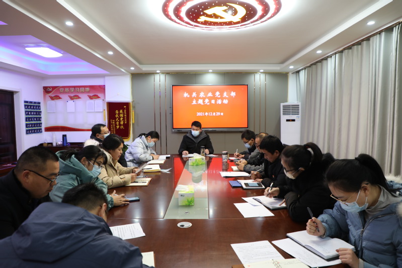 为进一步落实集团公司党委全面从严治党专项督查反馈问题整改,做好2021年党建工作回头看,不断筑牢基层党支部战斗堡垒,明确目标任务,认真谋划2022年各项工作,12月29日下午,机关农业支部在场部二楼会议室开展“对照整改抓提升,总结回顾重落实”主题党日活动。农场公司党委书记、董事长、分公司总经理赵志以普通党员身份参加会议,支部党员、入党积极分子13人参加。