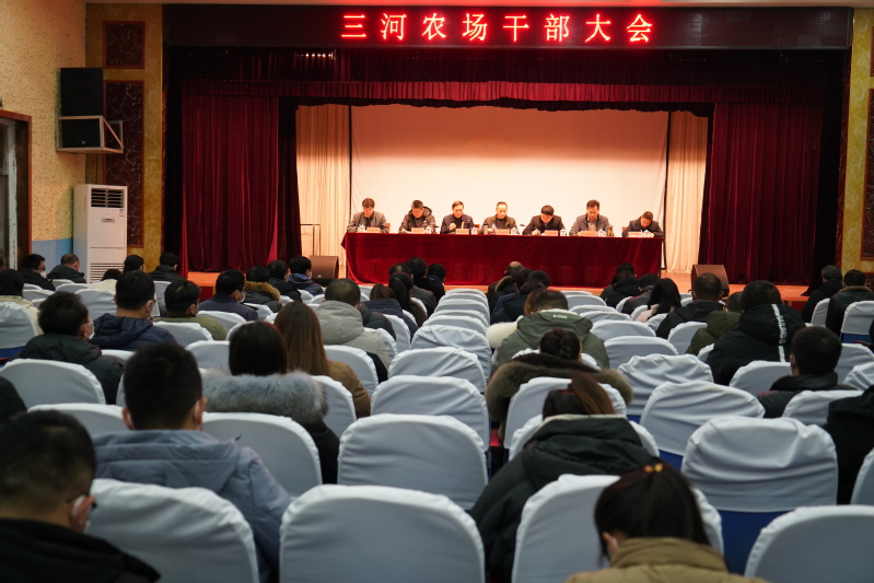 1月8日,三河召开干部大会,全面贯彻落实集团公司相关工作部署要求,动员全场上下进一步解放思想,更新观念、改进作风、凝心聚力、奋发进取,为全力建设 “强富优美”新三河凝聚思想共识,提供精神动力。公司领导班子、全体管理人员参加大会。农场公司党委书记、董事长、三河分公司总经理杨生力讲话。副总经理魏炳记主持大会。
