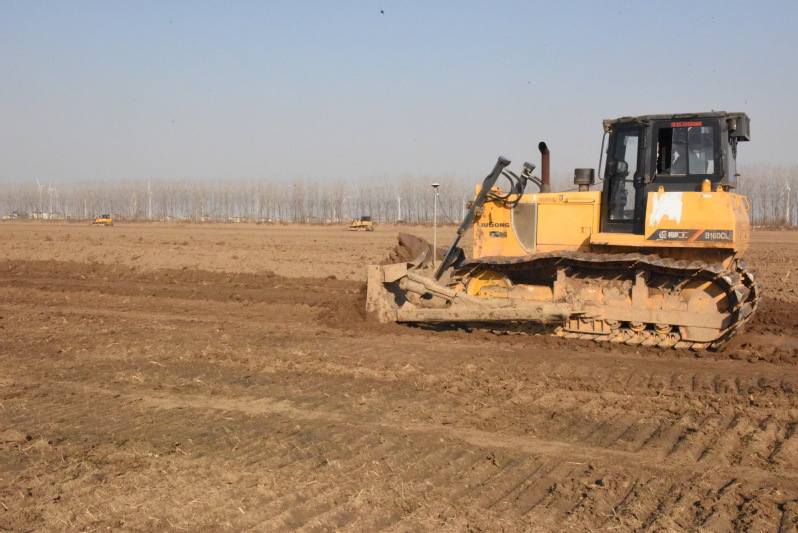 为进一步保护生态,提升对农业面源污染的整治能力,扩大整治效果,自2021年秋季以来,淮海农场有限公司通过在一万亩土地整治项目中新辟500亩地,建设500亩农业循环水种植项目的试验区,以期通过项目的开发利用,将农场的土地变成节能环保高产稳产农业水循环种植项目试点工作。图为大型机械在先期平整土地时的镜头。