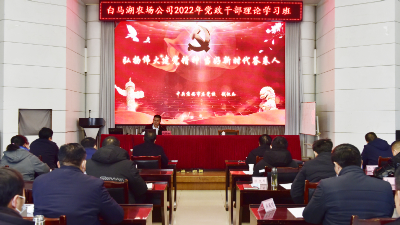 为进一步推动六中全会精神的学习贯彻和党史学习教育的巩固深化,持续加强思想政治和素质能力建设、锻造党员干部队伍、营造良好政治生态,更好地以新思想引领推进2022年度各项工作、以优异成绩向党的二十大和建垦70周年献礼,1月11日至12日,白马湖农场公司在淮安市委党校成功举办2022年党政干部理论学习班。