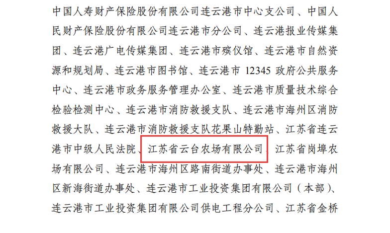 近日,江苏省文明委发文命名表彰2019—2021年度江苏省文明村镇、文明单位、文明校园(中小学)和江苏省文明行业,江苏省云台农场有限公司荣获2019-2021年度“江苏省文明单位”荣誉称号,这也是云台农场公司连续18年获此殊荣。