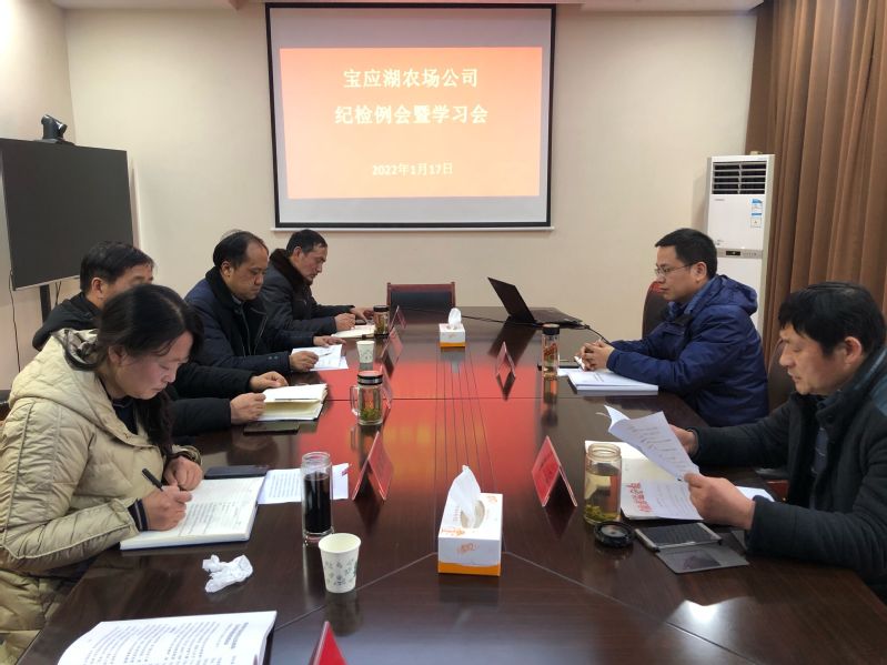 1月17日下午,宝应湖农场公司纪委召开纪检例会暨学习会,组织全体委员及纪委办公室成员学习习近平总书记在省部级主要领导干部学习贯彻党的十九届六中全会精神专题研讨班开班式上的重要讲话精神;纪委书记胡双同志传达2021年度垦区纪检机构负责人述责述廉会议上李旭东书记的讲话精神及集团公司两个通报精神。