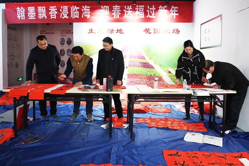 新春临近,年味渐浓。为弘扬民族文化,营造喜庆祥和的节日氛围。 1月21日,临海举办“翰墨飘香浸临海迎春送福过新年”活动。此次活动邀请农场文化志愿者和书法爱好者汤柏华、殷步军等人,在临海农场陈列馆内,现场为职工居民写春联、送祝福。