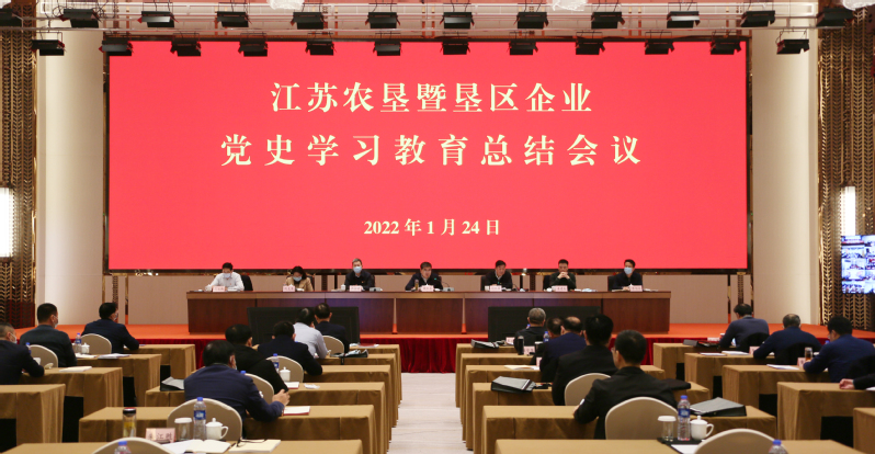 1月24日,江苏农垦暨垦区企业党史学习教育总结会议在宁召开。会议深入学习贯彻习近平总书记重要论述重要指示和中央、全省、省国资委暨省属企业党史学习教育总结会议精神,全面总结垦区党史学习教育取得的成效经验,对巩固拓展党史学习教育成果进行部署安排。集团公司党委书记、董事长魏红军出席会议并讲话,他强调,要坚决贯彻落实习近平总书记关于党史学习教育的重要指示和中央、省委决策部署,深入学习贯彻党的十九届六中全会、省第十四次党代会精神,不断巩固拓展党史学习教育成果,奋力谱写“强富美高”新江苏现代化建设的农垦篇章,以奋进新征程、建功新时代的优异成绩迎接党的二十大胜利召开。集团公司党委副书记、总经理胡兆辉主持会议,党委副书记姚准明传达中央、全省、省国资委暨省属企业党史学习教育总结会议精神,党委委员、副总经理姜建友,党委委员、总会计师刘克英,党委委员、纪委书记李旭东,党委委员、副总经理王立新出席会议。
