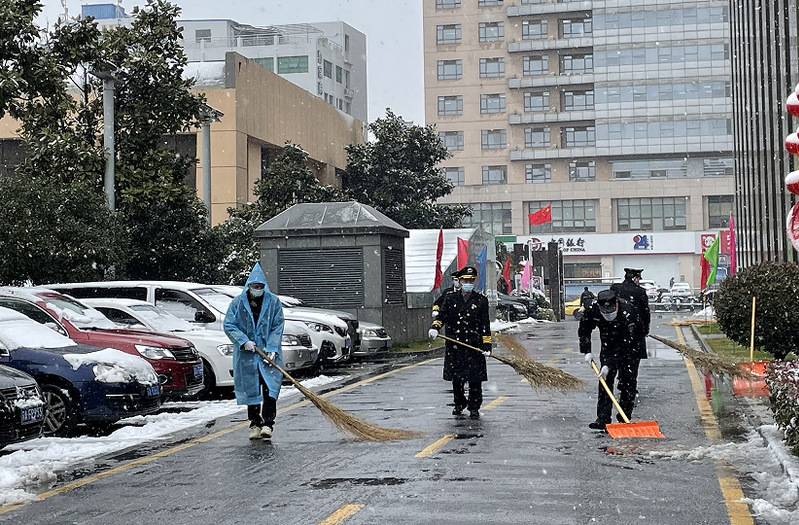 公司领导一早就深入基层一线,亲临现场指挥和检查扫雪工作,确保节后第一天业主正常上班。江苏农垦物业人以军垦精神,用心描绘出风雪中一抹最亮丽的色彩。