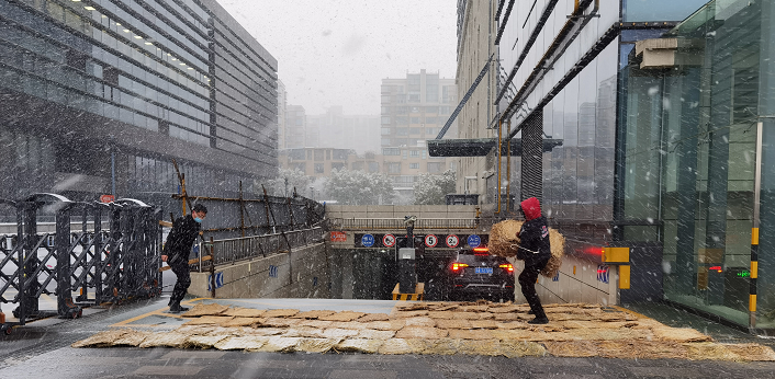 早在节前,物业公司就已对可能出现的低温、雨雪天气制定紧急预案,并适时推送通知敦促项目经理做好应急准备。面对纷纷扬扬的暴雪,物业公司各项目处沉着应战,按照既定方案迎接大雪的挑战,党员干部冲在前,践行“党旗在基层高高飘扬、党徽在一线熠熠生辉”。风雪中,鞋子进水了,袜子潮透了,但上班的业主都投来赞许的目光和会心的微笑....