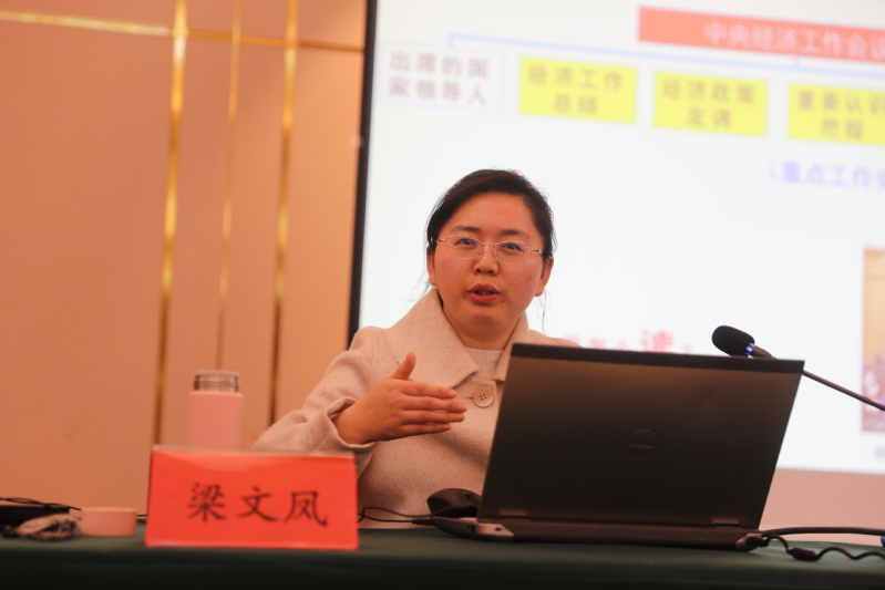 中共淮安市委党校经济学教研部主任、副教授梁文凤应邀为党员干部授课。梁文凤以“中央经济工作会议精神”为主题,从“经济工作总结”“经济政策定调”“重要认识把握”“会议重点重申”等方面,结合当前经济形势研判、国内需求供给、外部环境变化、财政政策和货币政策协调联动、房地产政策、人口生育等方面,进行深入浅出的讲解,对今后做好经济发展工作具有很强的针对性、前瞻性和指导性。