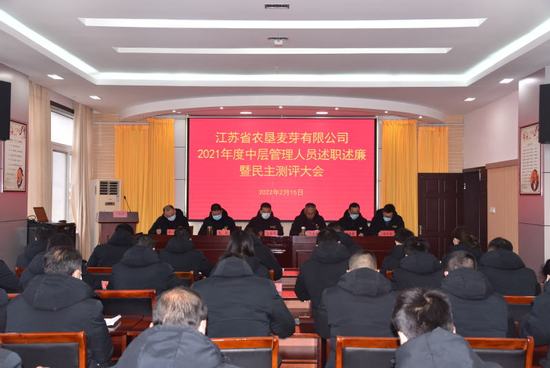 2月15日上午,苏垦麦芽公司召开2021年度中层管理人员述职述廉暨民主测评会议。公司党委书记、董事长郭世平出席会议并讲话,党委副书记、总经理吴善河主持会议。公司领导班子成员、中层助理以上管理人员以及部分职工代表参加了会议。