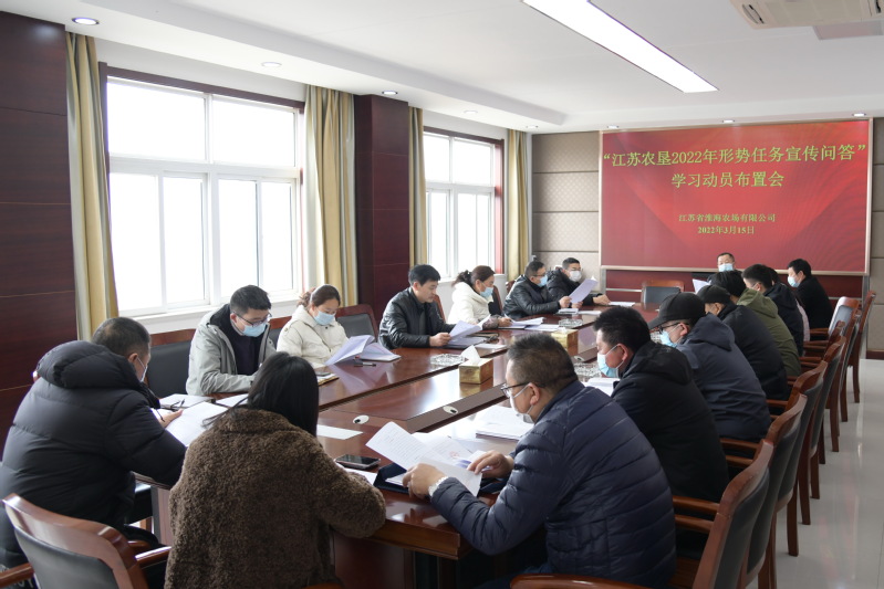 2022年是党的二十大召开之年、是全面落实省第十四次党代会精神的开局之年,也是江苏农垦建垦和淮海农场建场70周年。为动员农场公司上下攻坚克难、精准发力,以“钉钉子”的精神,坚韧不拔抓好落实,推动农场公司高质量发展步伐,进一步宣传贯彻新的一年发展目标和工作任务,落实好今年的重点工作,根据江苏省农垦集团有限公司党委宣传部、江苏省农垦职工思想政治工作研究会共同编印的《扛起新使命 谱写新篇章 奋力迈出江苏农垦现代化建设新步伐》(江苏农垦2022年形势任务宣传问答)读本要求,淮海农场公司企划宣传部门通过组织召开“江苏农垦2022年形势任务宣传问答”学习动员布置会,开展了以江苏农垦形势任务宣传教育为主题活动,以期通过活动的开展,动员广大党员干部、职工群众进行读本的学习、宣传和教育,从而掀起学读本、知读本、用读本的热潮。