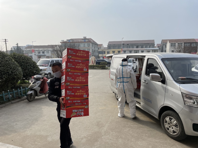 3月12日上午,在岗埠农场社区大楼门前,金土地公司负责人葛海云、岗埠心连心农资公司负责人方加派、地赐饲料负责人徐星一同为岗埠送来了整整30大箱共计1920公斤的八四消毒液、红烧牛肉面80箱、八宝粥20箱等物资。三家企业表示,为了保障我们人民群众的生命安全,大家都辛苦了,我们驻场企业只是尽一点社会责任,贡献一份绵薄之力,希望能帮助岗埠共渡难关。农场公司副总经理、工会主席王玉珍代表岗埠接受了捐赠,并向三家企业表达了深深的谢意,感谢爱心企业对岗埠疫情防控工作的支持和对全体抗疫一线人员的关心,同时,会及时把物资用到疫情防控工作中来,保护广大居民群众健康,充实疫情防控力量。除此之外,农场韩舍上品服装店为卡口点送去了1200元的食品饮料等慰问品,永玮友建材销售有限公司为农场社区送去了1500元的食品饮料,为一线防疫人员送去了温暖。