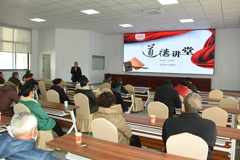 此次道德讲堂共分为“唱歌曲、看短片、讲故事、诵经典、品感悟、送祝福”6个环节进行。首先全体齐唱《公民道德歌》,感受文明礼让,尊老爱幼,爱岗敬业等道德风尚。通过观看公益系列短片——《等你回家》,让大家深深认识到父母就是我们的港湾,就是保护我们的臂膀,我们要学会感恩,感恩父母给我们的一切。第三届“厚德临海人”—王慧为大家讲述了自己的道德故事,她丈夫常年在外打工,她既要照顾在县城读书的儿子,还要照顾患病的父母。母亲患癌常年卧床不起,她多年如一日的,守护在母亲的床前,喂药、擦洗身子,无微不至地照料,从没有半句怨言,她坚守着对家人的责任和义务,从细微之处关心家中的老人,用自己的默默付出诠释着对长辈的感恩与报答,让大家真真切切感受到了道德的力量、榜样的力量。随后,大家诵读了关于孝老爱亲的一段经典语录。