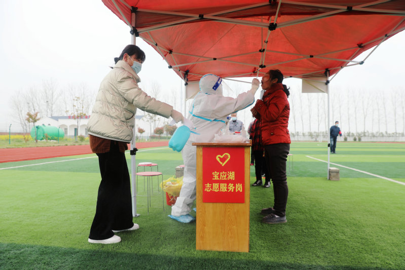 测温、扫码、登记、等侯、采样,检测现场秩序井然,当天完成境内居民3296人核酸检测采样,实现了全员核酸检测的目标任务。