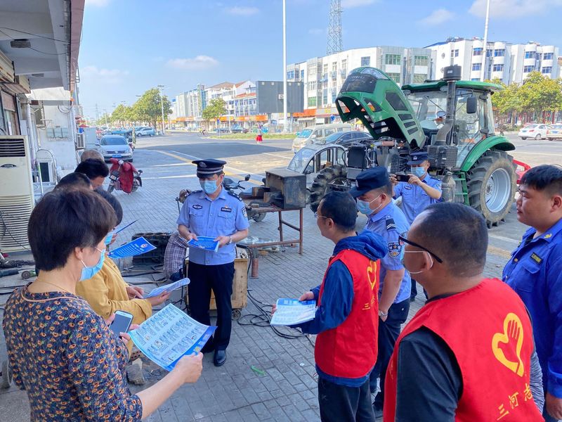5月24日上午,第七支部党员联合官滩派出所民警一起在人员较为密集的农贸市场附近开展宣传活动。通过发放“盱眙警方温馨提示”、“盱眙公安防范通讯网诈骗宣传单”民警现场讲解诈骗案例等。