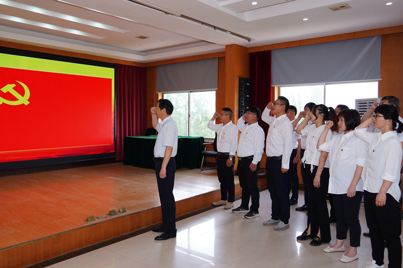 公司党委工作部长杨干华带领新发展党员举行入党宣誓仪式,老党员重温入党誓词。