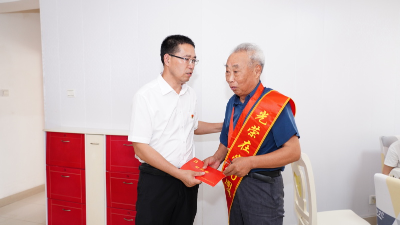 7月1日建党节,弶港农场有限公司党委书记胡广斌和党委工作部负责人一起上门慰问老党员朱凤官,为他送上“光荣在党50年”纪念章和节日的祝福。胡广斌亲切地询问老两口的身体状况和生活状况,并代表公司党委送上“七一”慰问金。盐城市纪委副书记嵇红梅亲自为老党员朱凤官送上鲜花,并致以“七一”节日问候,详细了解老朱身体状况和生活中存在的困难,叮嘱老两口要保重身体。