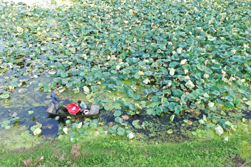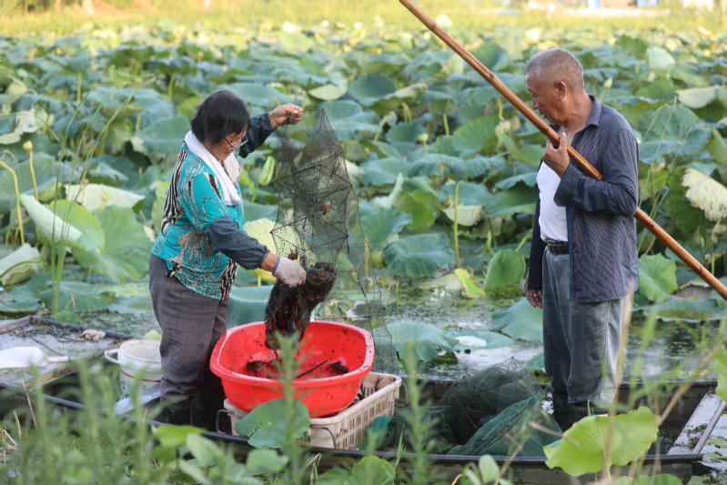 藕虾混养,不仅实现了一塘双收的经济效益,而且达到了自然循环、共生互利的生态效益。