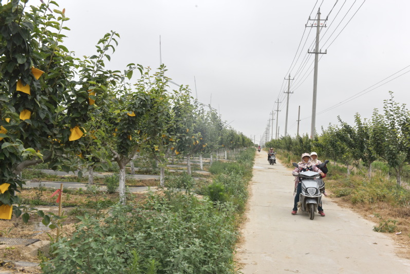 “我们资源管理中心,做的是常规的管理项目,需要一定技术含量的事情不是很多,一般的农民进来就可很好的作业;而如果遇到有点技术含量的事情,我们就现场对大家进行简短的培训,培训合格以后就带人安排他们到操作岗位上去上班。”淮海资源开发管理中心负责人顾明辉说。目前,在资源开发管理中心常年服务的人就有二三十人,多的时候有五六十人,人均月收入在3000元上下。图为在果园内完成任务的农村群众,喜滋滋地骑着电瓶车在回家的路上。