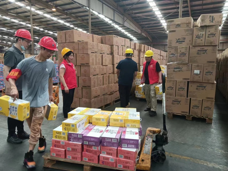 受疫情影响,5、6月份商场主力代理品牌“尤妮佳”工厂停产,7月份复工复产以来,仓库日均吞吐量激增,为进一步提高仓储运转效率,中山大厦商场党支部“商旅先锋”突击队决定前往新港大库助力支援。