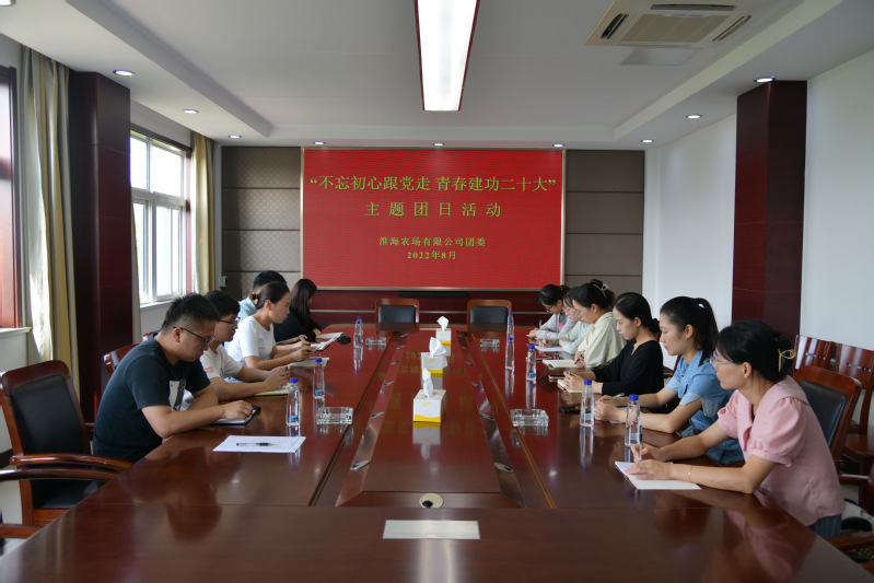 8月5日,淮海农场公司团委组织13余名团员青年在农场机关三楼会议室开展“不忘初心跟党走青春建功二十大”主题团日活动,激励和动员淮海团员青年把爱党爱国热情转化为实际行动,感受百年党史深厚的文化底蕴, 从党的百年伟大奋斗历程中汲取继续前进的智慧和力量。