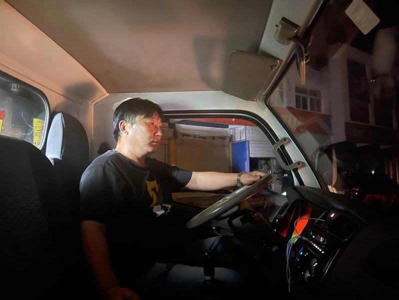 一个点一个点跑,一桶一桶装,一车一车卸。戴玉刚对每个清运点的位置熟悉得不能再熟悉,一天作业下来能跑40多公里。当车里垃圾处理完毕,他们又开始洗车刷车……等到都弄干净了才回家吃点东西,再睡上一觉。
