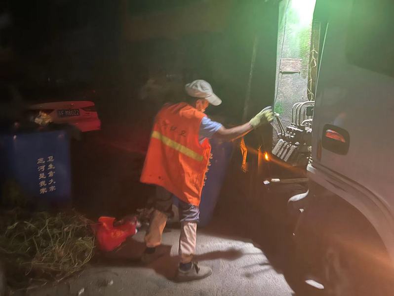 凌晨三点的三河,月色温柔,满天繁星。垃圾清运车司机戴玉刚头顶星光开始了一天的工作。