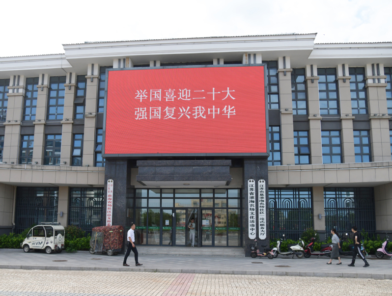 “喜迎二十大,同心向未来”“举国喜迎二十大,强国复兴我中华”……连日来,在淮海文化广场前的LED大屏上,滚动播出了一条条喜迎二十大的宣传标语,引得路过的职工群众纷纷驻足观看,为迎接党的二十大营造出了浓厚的宣传氛围。