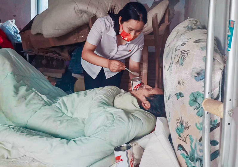 云台农场张圩居委会所辖小粮地居民点,地理位置偏僻,是个只有5 户人家的待撤并村庄。2022年8月9日,在“四个百”活动日常走访中,当居委会走访到小粮地居民点曹子牛家时,发现昏暗的房间内阵阵异味扑鼻而来。独居在此的居民曹子牛,因起夜从床上不慎跌落在地,造成意识模糊讲不出话来,大小便失禁,生活无法自理,成了一名“失能人”。作为居委会的帮扶对象,曹子牛一直是村子里让人头疼的“老大难”。年轻时候的曹子牛常年游手好闲、酗酒成性,喝多了就家暴妻子孩子,2010年、2018年,他先后两次因为酒驾摔伤,导致左腿粉碎性骨折、腰部受伤,妻子头部严重受伤。厄运接踵而至,让妻儿无法忍耐,先后离开了家。由于他平日的言行,加之亲属能力有限无人愿意照料他,这给张圩居委会党支部书记徐洪敏出了一道大难题,这烫手的山芋到手了就没有丢掉的道理,徐书记没有丝毫的犹豫,她立即成立了以她和居委会党支部委员段万江同志、小粮地辖区网格单元长顾林国同志为成员的专项帮扶小组,第一时间为曹子牛送去了米、面、水、鸡蛋、八宝粥、隔尿垫、尿不湿等食物和生活必需品,并看守照料曹子牛。照料这样的失能人难度可想而知,而这位90后女书记愿意带着大家干这种又脏又累伺候人的活,更是难以想象!面对满屋的异味,她连眉也没皱一下,不嫌脏、不怕累,带领帮扶小组上前给曹子牛喂水、喂药、喂饭,处理他的大小便,换洗床铺,打扫房间,真正将群众视为自己的亲人去照料,去爱护。照料曹子牛生活的同时,她也没有停止为曹子牛争取援助的脚步。她积极联合辖区派出所和有关部门,想方设法联系他的亲属,苦口婆心的劝说,帮助协调矛盾纠纷,积极申请民政救助,联系海州区残联上门帮助他评残,为曹子牛申请重残补助,让曹子牛真真切切地感受到党的关怀。