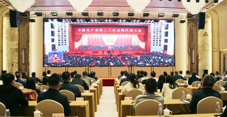 新曹农场公司组织全体党员干部、管理人员和盐城市党代表、东台市党代表、人大代表、政协委员以及驻场单位负责人等集中收看党的二十大开幕会。与会人员全神贯注聆听习近平总书记所作的报告,会场秩序井然,学习氛围浓厚。