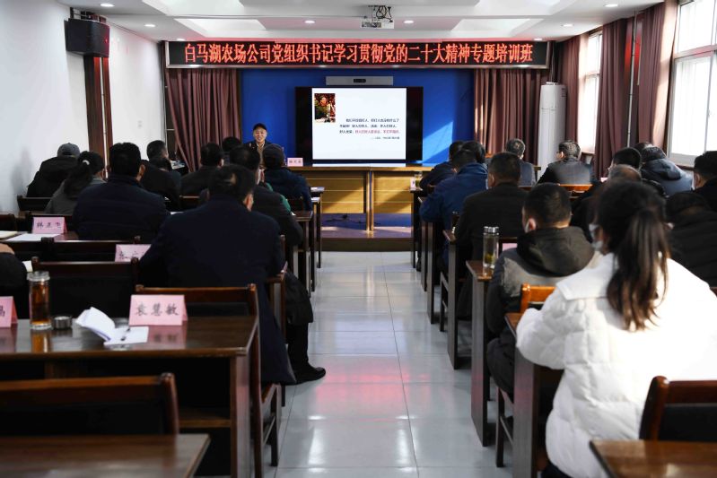 为深入学习贯彻党的二十大精神,提升基层党组织书记业务水平和工作能力,扎实推动学习贯彻党的二十大精神走深走实,12月15日下午,白马湖农场公司党委举办党组织书记学习贯彻党的二十大精神专题培训班。