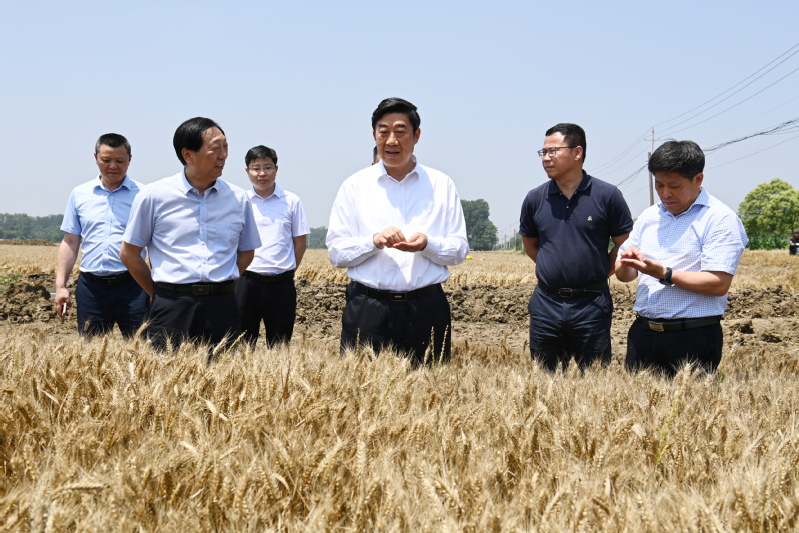 胡兆辉深入田间地头、相关单位、项目现场,实地察看小麦熟相品质和产量表现,详细了解“三夏”工作布局开局和装备设备到位情况,调研指导江苏农垦现代农业产业高质量发展示范园建设启动推动和制种大县项目落实落地工作,并对白马湖举全场之力备战奋战“三夏”的良好态势给予肯定。他指出,要针对白马湖小麦全部留种、且品种有28个之多的实际,针对可能出现的不利天气,做好应急预案,确保夺取夏收保种工作的全面胜利。要抓住近期天气有利的时机,全力组织收割机械力量,充分调度各类资源要素,以“抢”的意识、“拼”的精神、“战”的姿态,统筹做好“收、种、运、晒、储”各项工作,确保应收尽收、颗粒归仓,真正将夏粮丰收在望变为丰收到手。要强化结果导向,瞄准“三夏”工作“全能冠军”“单项冠军”目标,以为集团公司、为保种作贡献论英雄,进一步提升各项工作质效。要高效统筹主题教育与“三夏”工作,将主题教育成效转化为“三夏”攻坚、干事创业的精气神,坚持以学促干、以干促学,重实践、建新功,守牢安全底线、巩固民生保障、维护社会稳定,不断提升职工群众获得感、幸福感、安全感。