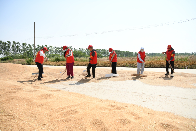 冲锋在前,做好助收员。闻令而动、依令而行,社区党组织组织党员干部深入三夏工作一线,帮助生产区抢收晾晒,晒场上,大家顶着烈日,及时翻、晾登场小麦。