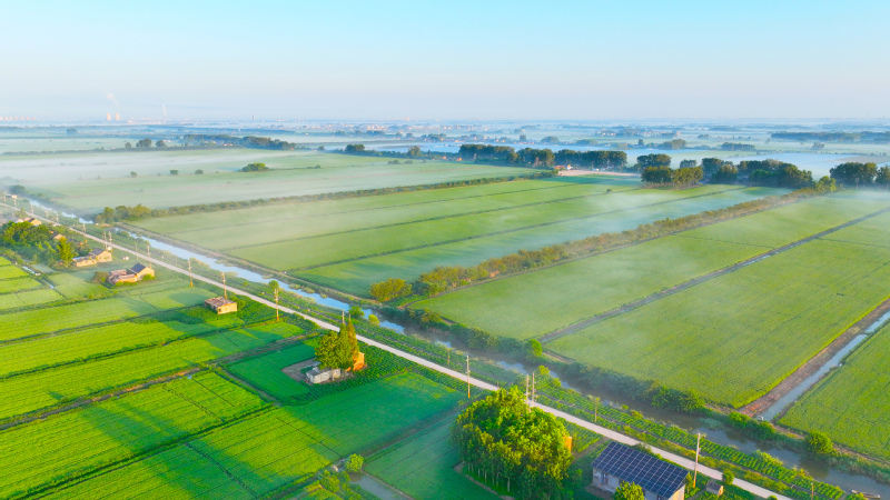 稻穗杨花金秋,清晨,白马湖境内晨雾弥漫,稻田、乡道、朝阳、树木、沟渠等若隐若现,“勾画”出一幅和美乡村的美丽画卷。