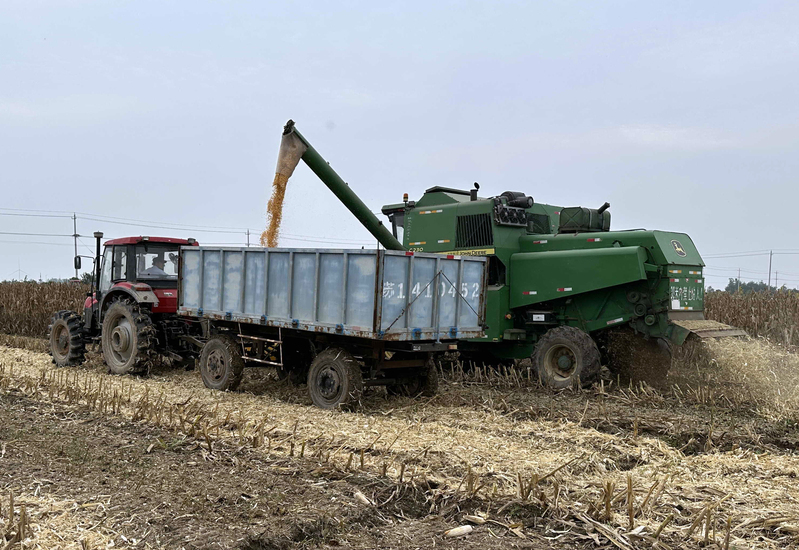 10月4日,苏垦农发淮海分公司在四个农业生产区,同步采用专用机械开始收获大豆、玉米。只见收割机边行走边在吞秆吐秸,机械粮仓的出粮口,金黄色的大豆或黄灿灿的玉米便倾泻而下,满眼望去,是一派繁忙景象。