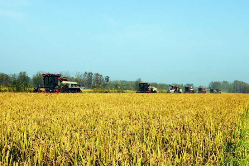 眼下,岗埠水稻收割进入尾声,伴随着机械的轰鸣声,一台台水稻收割机在稻田间来回穿梭作业,职工们抢抓农时,抢收劳动成果,确保颗粒归仓。图为2023年10月30日,农发岗埠分公司积极组织收割机械、运粮机械200多台抢收水稻,确保5万亩水稻颗粒归仓。