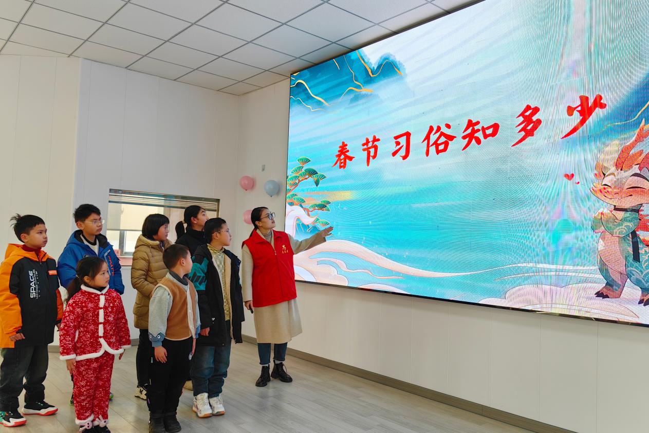农场公司将年味“搬”进实践所,开展“春节习俗知多少”、制作龙年花灯、诵读春节经典等形式多样的活动。“古时候,有一种叫做‘年’的凶猛怪兽,每到腊月三十,便窜村挨户……”大讲堂内,志愿者正声情并茂讲起了春节的历史起源、文化内涵等基本知识,并详细介绍了“年”的传说、年夜饭、贴福字、写春联、拜年等习俗的由来以及春节礼仪的习俗。