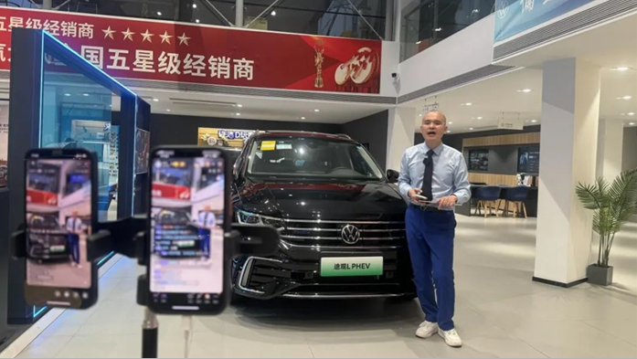 “不是任何人都适合面对镜头,所有销售顾问必须轮播上岗,通过全员直播选拔优秀主播人员和销售支持。”市场专题会议上,苏舜对直播营销的人员架构和主播的选拔提出了明确要求。苏舜年轻人居多,他们不仅充满活力,而且对新鲜事物感兴趣,公司从中挑选出形象好、口才出众、专业能力强等方面均较为优异的员工,经过培训后组成主播团,轮流在网络上展示自我,试播通过后再择优确定最终人选,让员工既下得了车间,还上得了直播间。目前,公司11家4S店直播营销团队均为“1+1+3”的架构(即:1名专职主播、1名兼职主播和邀约专员、销售顾问、服务顾问3名销售支持人员),形成类似DCC的直播小组协同作战,主播人员中既有企业一线员工,也有基层管理岗位人员。