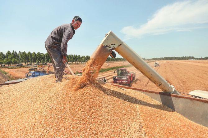 昨日,位于淮安盱眙洪泽湖畔的江苏农垦三河农场的3.82万亩小麦开镰收割。据测产,三河农场今年小麦总产量可达4400万斤,90%以上将作为优质种子,供应长三角地区及河南等地。通讯员 许昌银 本报记者 余萍 摄