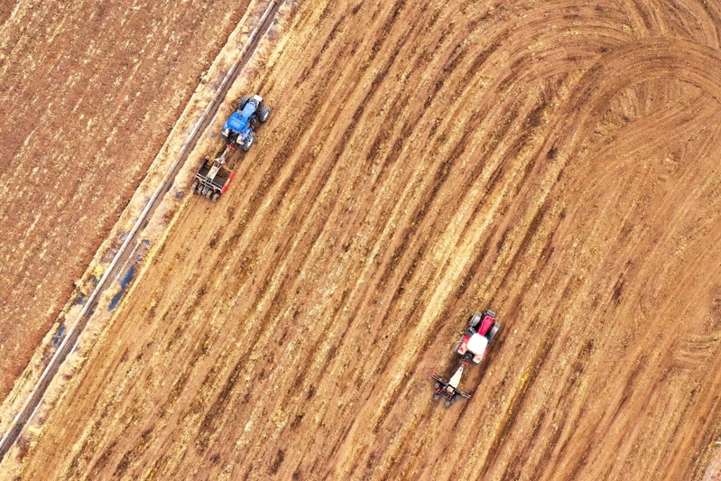 2月6日,江苏农垦新洋农场组织北斗卫星平地机对高标准农田进行厘米级精度的激光土地平整作业,为“春耕”水稻育秧做好准备。