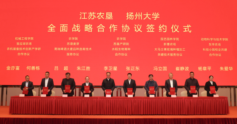 集团公司总经济师、相关部门负责人,相关农场、苏垦农发等单位负责人,扬州大学相关学院及部门负责人、专家教授等参加签约仪式。