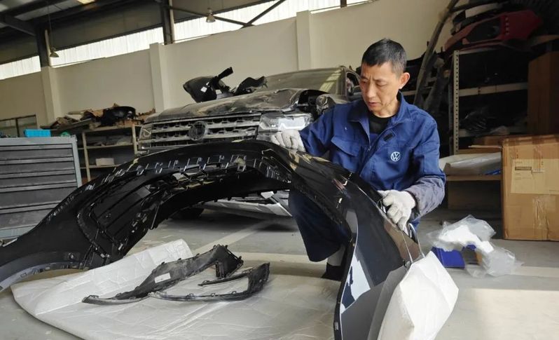 苏舜宝腾公司(上汽大众4S店)钣金技师顾兵正在维修一辆事故车。由于车主在五一假期着急用车,顾师傅就主动放弃休息时间,加班加点赶进度,用实际行动赢得了客户的信赖和满意。