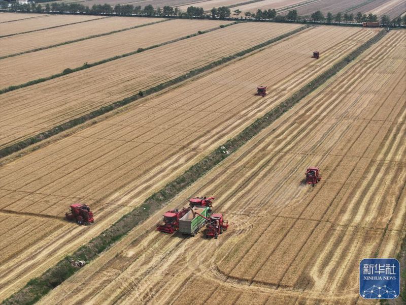 “三夏”时节,在位于江苏盱眙的江苏农垦三河农场的农田里,农机来回穿梭,一片繁忙景象。农人们抢抓农时,进行夏收、夏种等作业。据介绍,三河农场4.1万亩小麦目前已收获七成。
